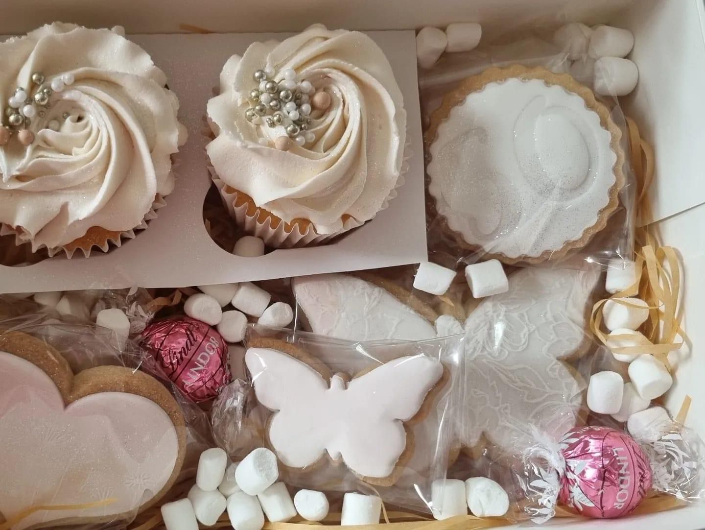Mix and match with a choice of Cupcakes, Iced biscuits, Macaroons, Brownies, Cakesicles and assorted chocolates to make your bespoke treat box come to life.